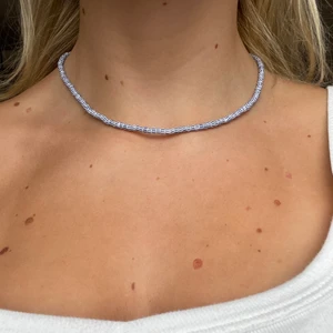 Ett super fint och trendigt halsband med randiga pärlor i blå och vit 💙 🤍 ingår spänne och ringödlor vilket gör att man kan justera det efter önskan 💙🤍