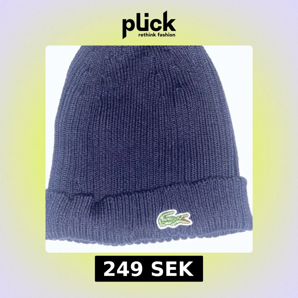 Snygg mörkblå stickad mössa från Lacoste som är använd max 2 gånger. Perfekt för kyliga dagar och passar både dam och herr.
