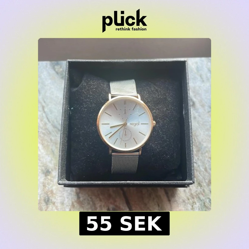Stilren klocka från Regal med silverfärgad urtavla och guldiga detaljer. Klockan har ett elegant meshband i silver och levereras i originalask. Perfekt accessoar för att lyfta din outfit.