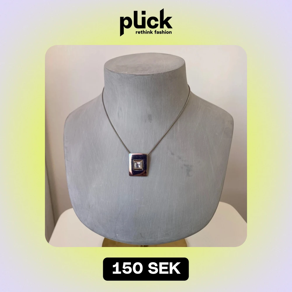 Snyggt och stilrent halsband med ett fyrkantigt hängsmycke. Hängsmycket har en glittrande sten i mitten som ger en lyxig touch. Perfekt för både vardag och festliga tillfällen. Kedjan är tunn och smidig med ett enkelt lås.