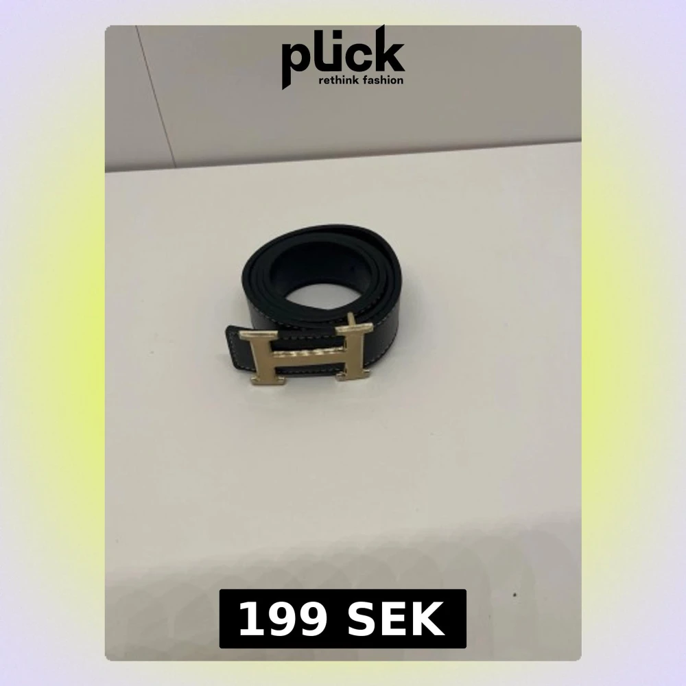 Ett svart bälte med guldigt H. Den är helt ny och är 105 cm lång. Pris kan diskuteras och skriv om du har några frågor.