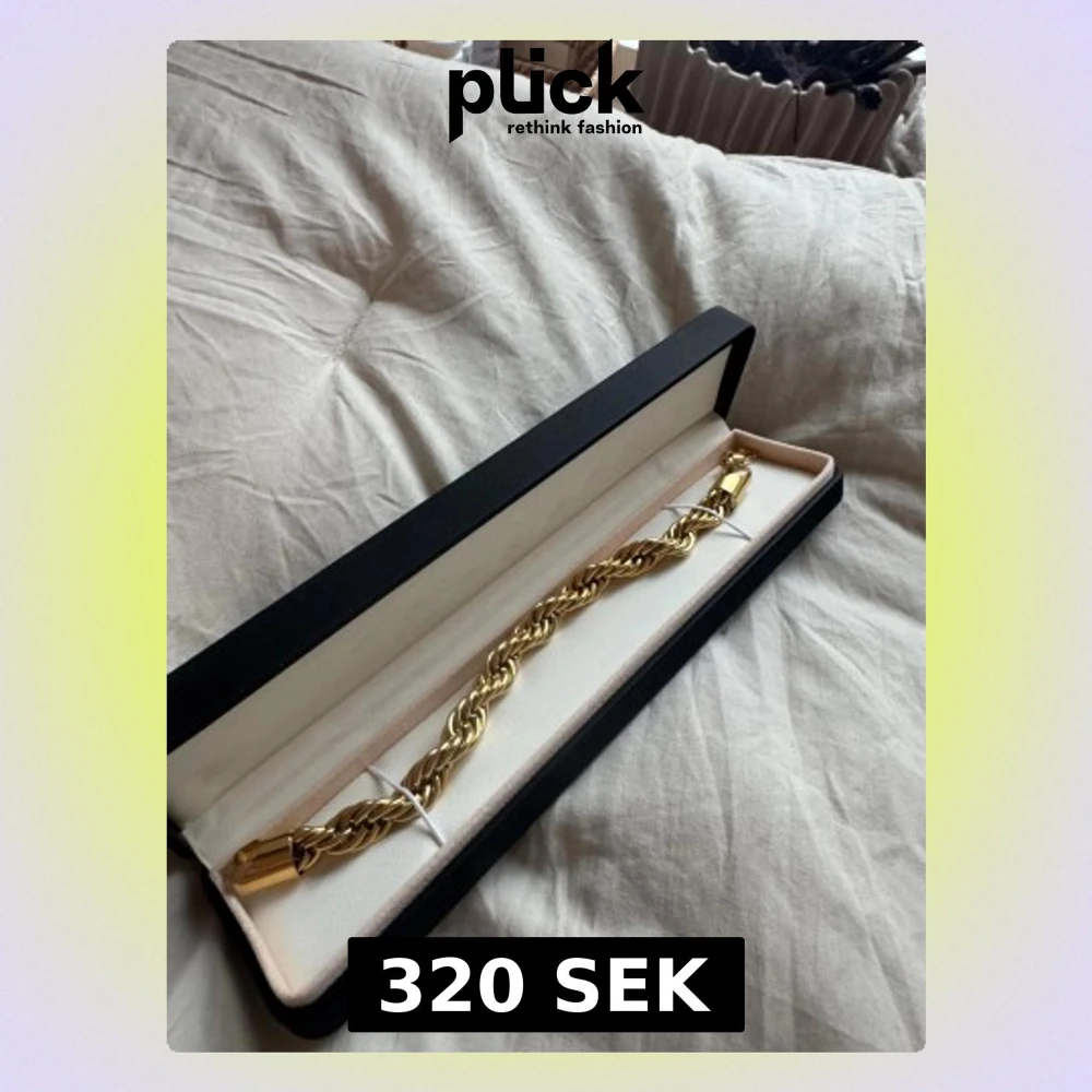 Säljer ett snyggt guldfärgat armband från Indossa by Sweden. Armbandet har en tvinnad kedja och robust lås, levereras i original ask. Perfekt accessoar för att lyfta din outfit. 8 mm