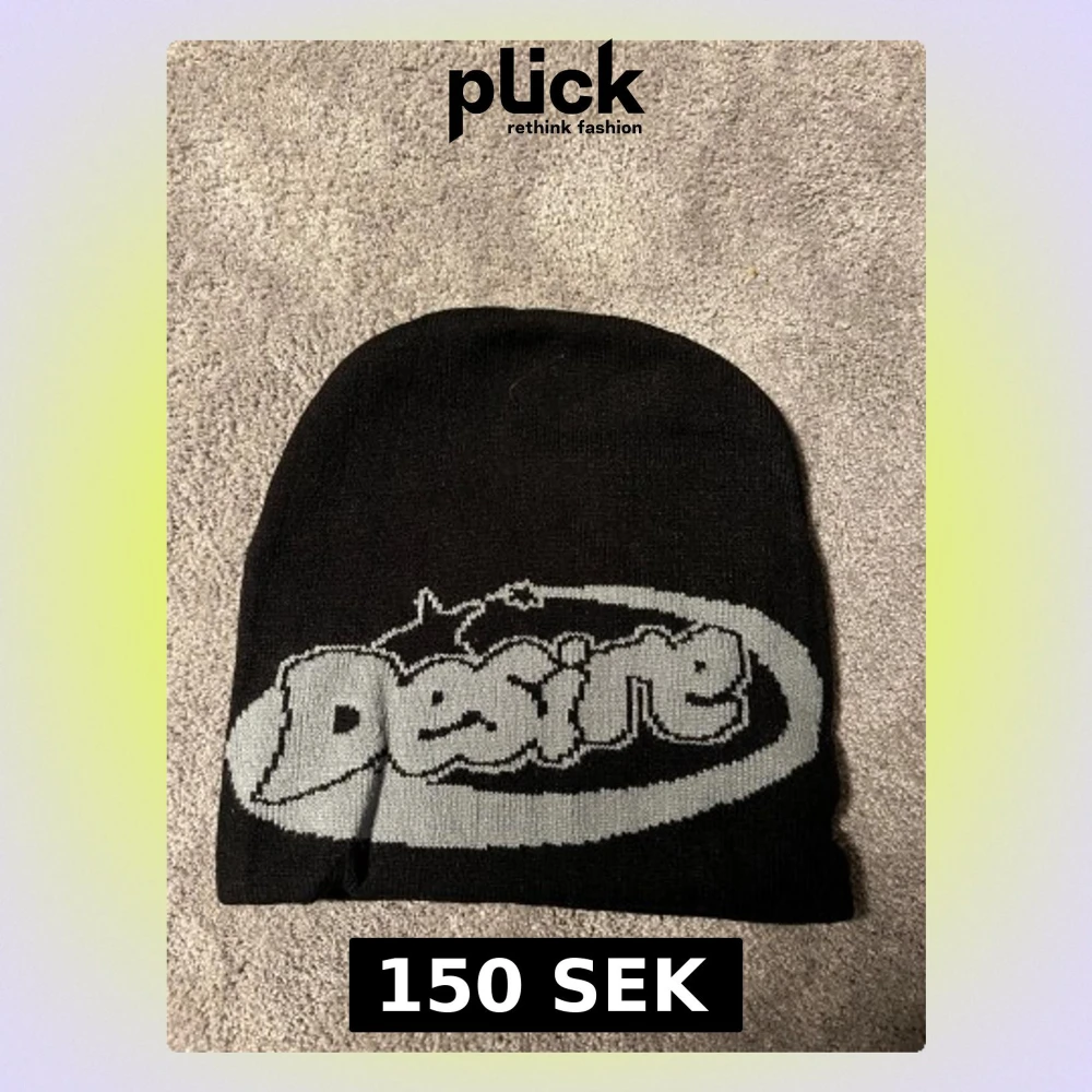 Snygg svart mössa med grått Desire-tryck framtill i streetstil. Mjuk och stretchig modell som sitter skönt på huvudet. Perfekt accessoar för att lyfta din outfit och hålla värmen under kyliga dagar.