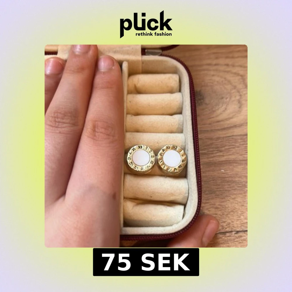 Snygga guldörhängen med en vit mitt och romerska siffror runt kanten. Perfekta för att ge en elegant touch till din stil. Kommer i en praktisk förvaringsask.
