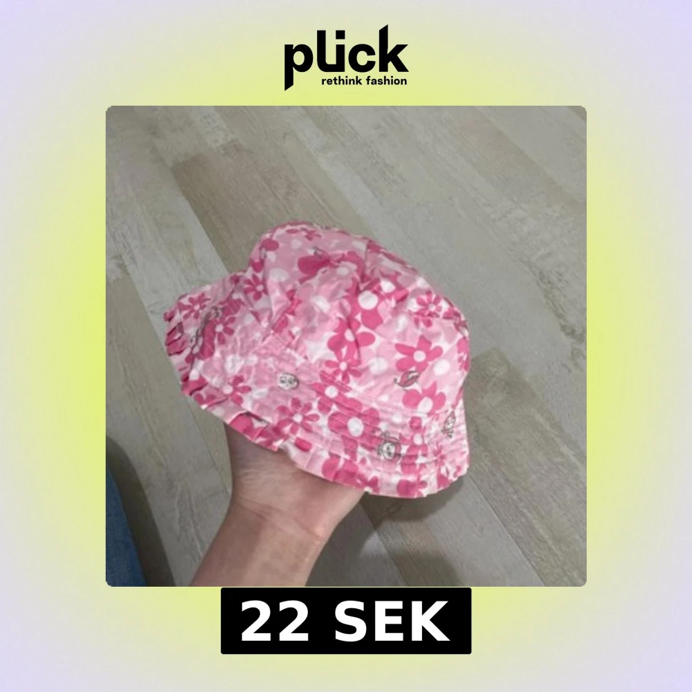Söt rosa solhatt med blommigt mönster i olika rosa nyanser och vita detaljer. För barn!