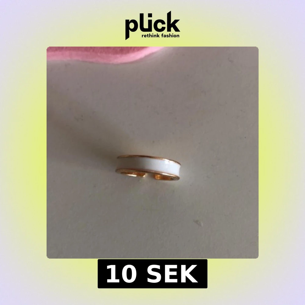 Snygg ring med vit mitt och guldfärgade kanter. Ringen har en stilren och modern look med en slät yta och öppen baksida som gör den enkel att justera. Perfekt för dig som gillar minimalistiska smycken med en touch av lyx.