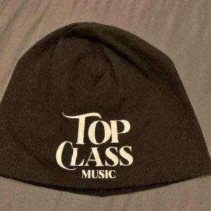 Top Class Music - Svart mössa med vit text där det står 'Top Class Music' framtill. Klassisk modell i mjukt material som sitter skönt på huvudet. Perfekt accessoar för att hålla värmen och visa din stil.