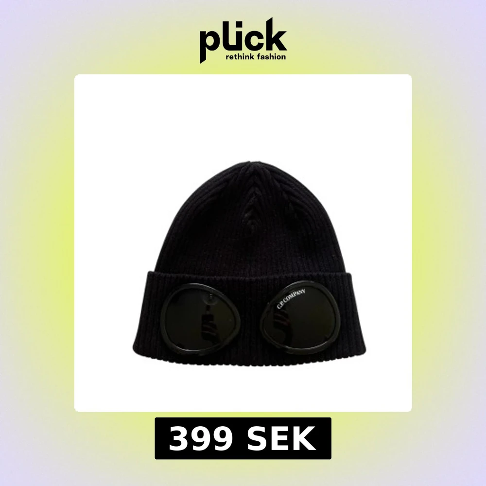 Svart ribbstickad mössa från C.P. Company med coola inbyggda svarta glasögon framtill. Mössan har uppvikt kant och en urban vibe som sticker ut. Perfekt för dig som vill ha något unikt och trendigt på huvudet.
