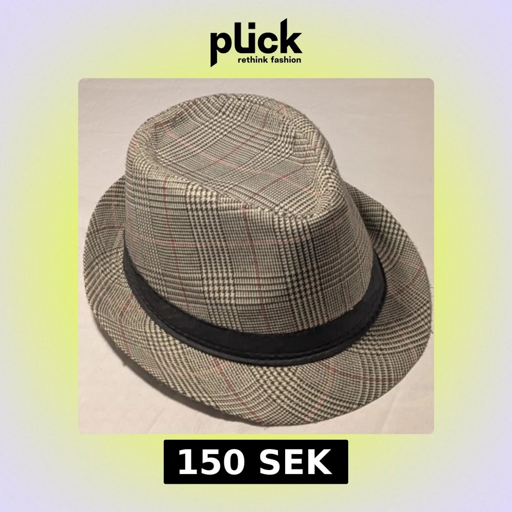 Snygg fedora hatt i klassiskt rutigt mönster med inslag av beige, svart och röda linjer. Hatten har ett svart band runtom och en stilren form som ger en cool vibe. Perfekt för dig som vill sticka ut med en unik accessoar. Materialet känns som bomull eller syntet.