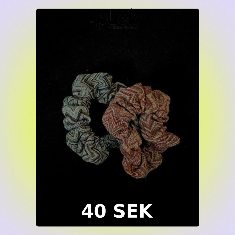 Handgjorda scrunchies i zigzag. Blå och rosa, går att köpa i set. Styckpris 40kr🩷💙
