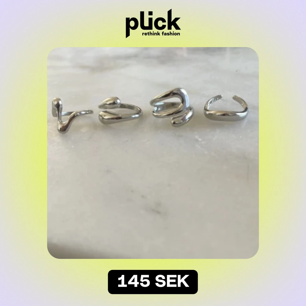 Säljer ett set med fyra unika silverringar. Varje ring har en egen cool design, från vågiga former till minimalistiska öppna stilar. Perfekta för att mixa och matcha till olika outfits. De är i nyskick💗 alla för 145!