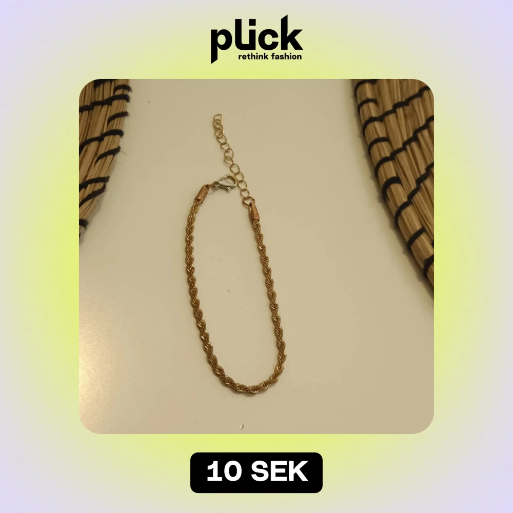 Säljer detta armband då det inte kommer till användning längre. Tvinnat guldfärgat armband, storlek är olika, finns olika nivåer, så passar de flesta. För skick, se bilderna. Lågt pris! Strass!