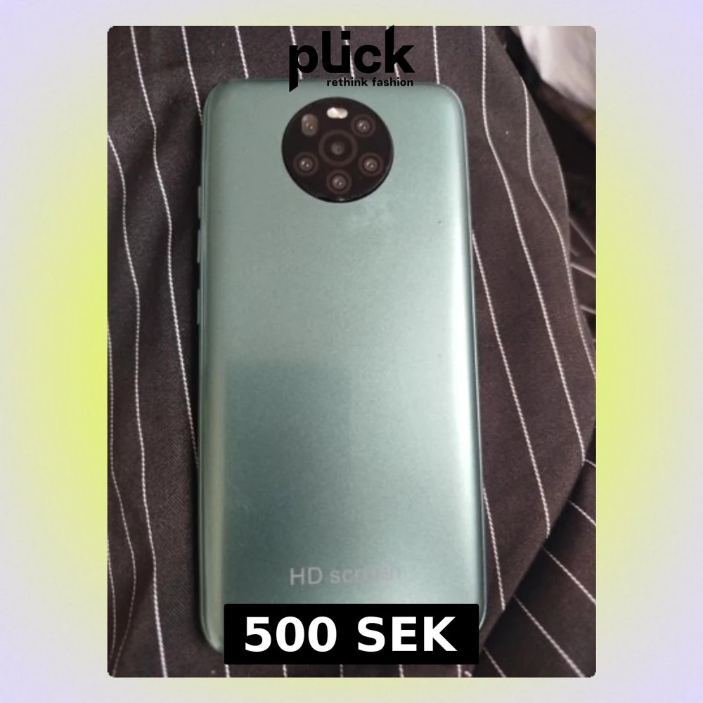 Snygg grön Android-telefon med rund kameramodul på baksidan som har flera linser. Baksidan är i metall-look och texten 'HD screen' syns längst ner. Telefonen har en modern design och passar perfekt för dig som gillar stilrena mobiler.frakt tillkommer använder mig av Postnord alt hämt.