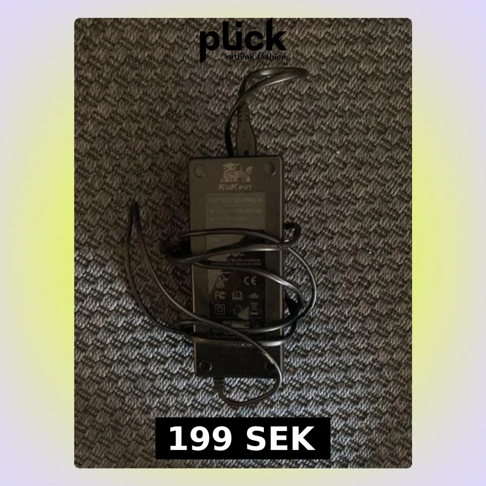 Svart batteriladdare från KUKURIN g2 PRO med rektangulär form och tydlig etikett på ovansidan. Laddaren har en fast kabel och är tillverkad i plast. Perfekt för att ladda batterier till olika elektroniska prylar.
