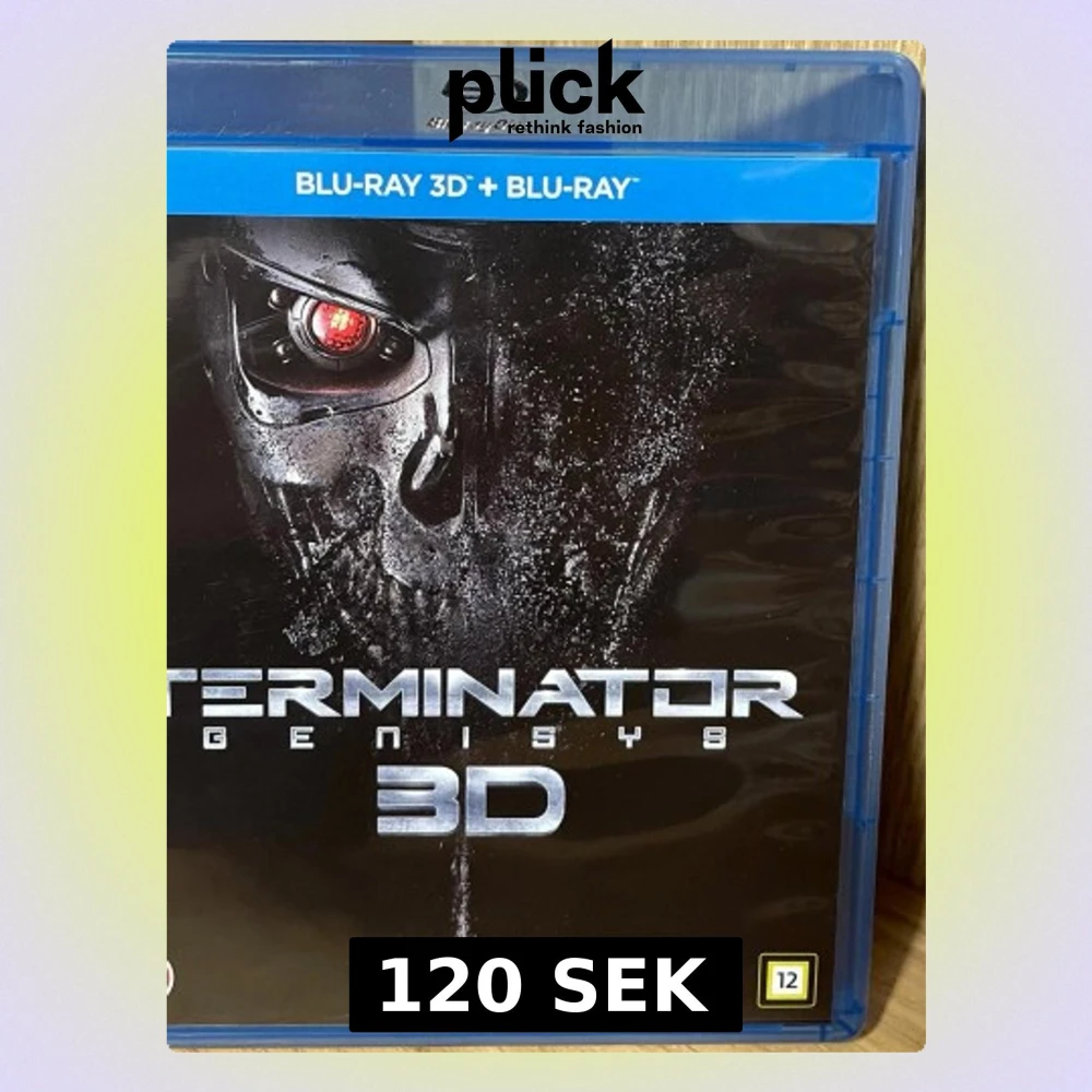 Säljer filmen Terminator Genisys i 3D Blu-ray-utgåva. Omslaget är svart med en metallisk robot och röd detalj i ögat. Innehåller både Blu-ray 3D och vanlig Blu-ray. Text på svenska, danska, norska och finska. Perfekt för sci-fi-fans!