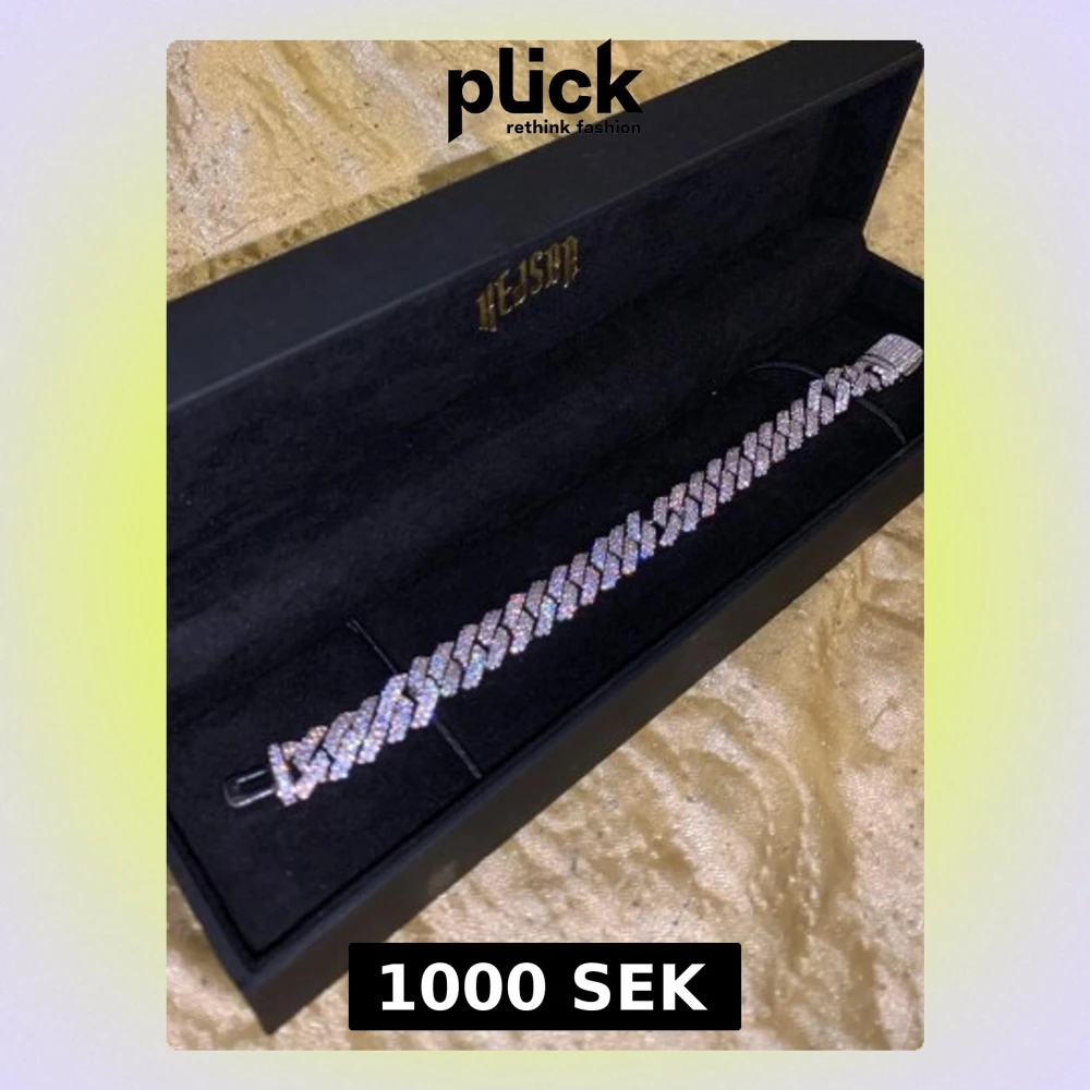 Säljer ett glittrande iced ut kedjearmband från kejsar. Armbandet är silverfärgat och täckt med små gnistrande stenar som ger en lyxig känsla. Kommer i original svart ask med guldfärgad logga. Perfekt för dig som gillar statement-smycken. Helt ny använd 2gånger
