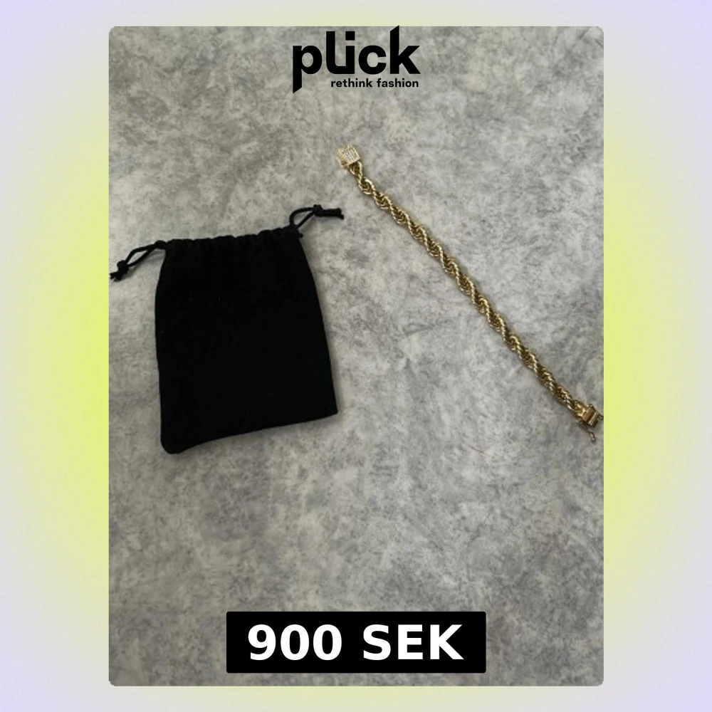 Snyggt armband i guldtonad metall med tvinnad design. Låset är dekorerat med små klara stenar för extra bling. Kommer med en svart tygpåse för förvaring. Perfekt accessoar för att lyfta din stil.