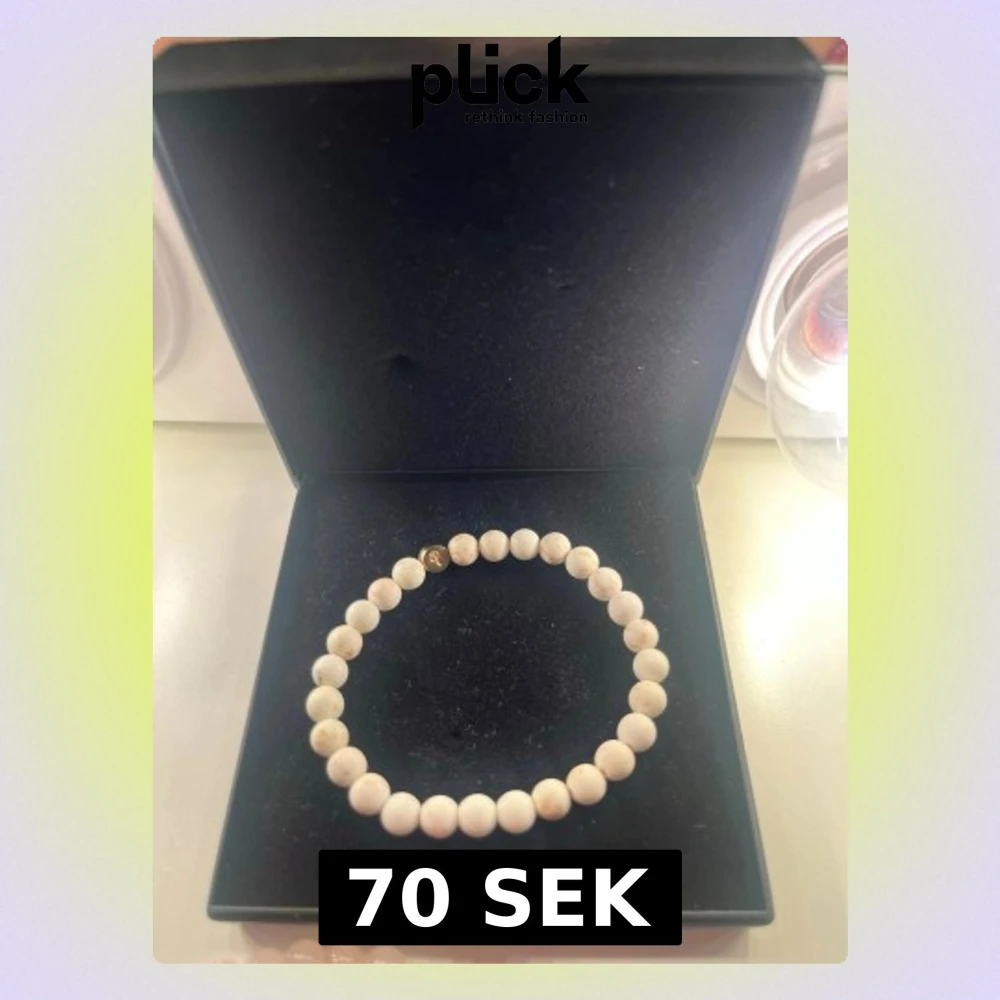 Snyggt armband med runda vita pärlor trädda på elastisk tråd. Perfekt för dig som gillar stilrena accessoarer med en minimalistisk känsla. Levereras i en elegant svart ask.