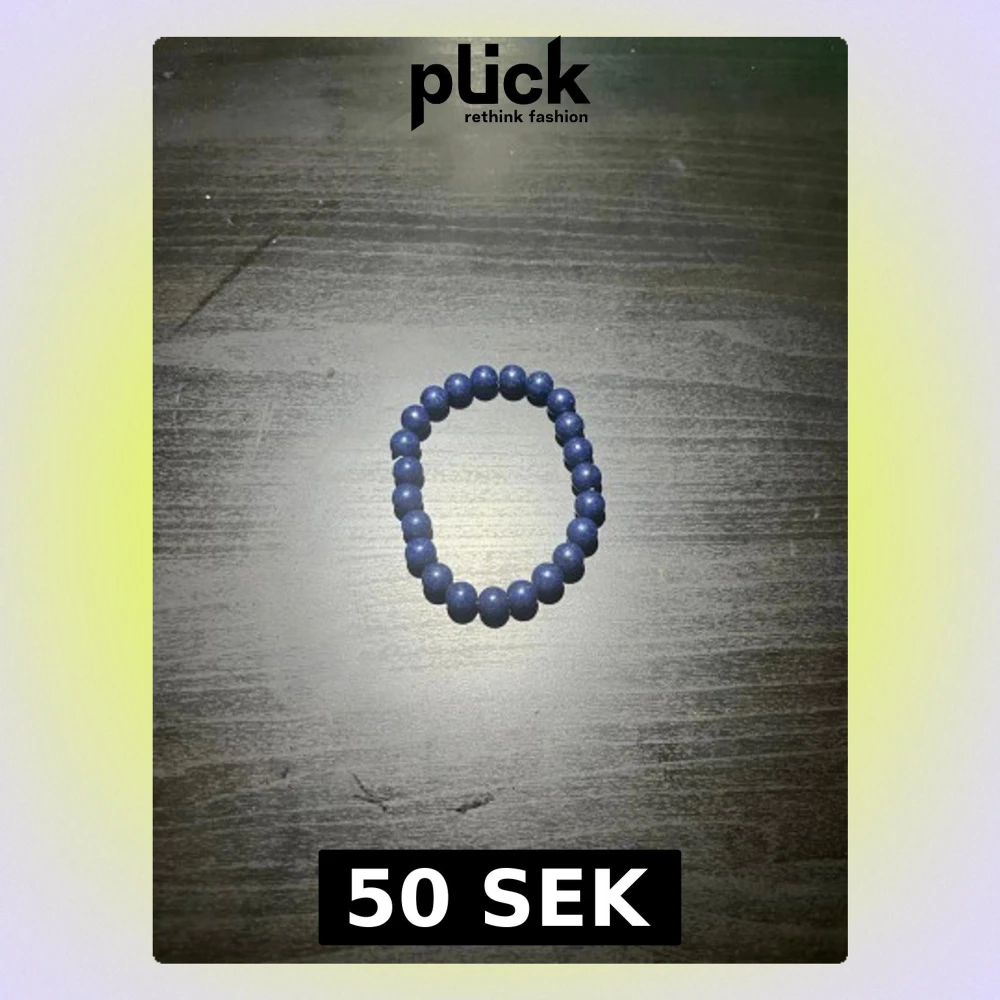 Snyggt armband med mörkblå runda pärlor trädda på elastisk tråd. Perfekt accessoar för att addera lite färg till din outfit. Passar både ensam eller i kombination med andra armband. Materialet är troligtvis plast eller akryl.
