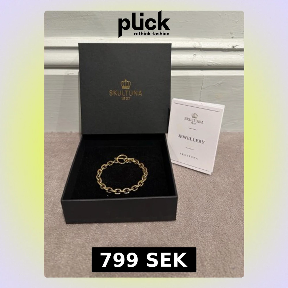 Nypris: 1000Snyggt guld armband från Skultuna med klassisk kedjedesign och elegant T-låsfäste. Armbandet kommer i original ask. Perfekt accessoar för dig som gillar stilrena smycken med exklusiv känsla.