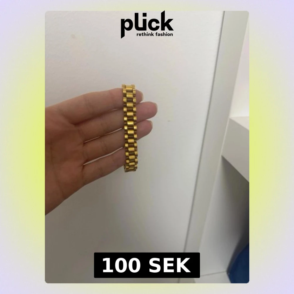 Snyggt armband i guldfärgad metall med breda länkar och en stilren, modern design.