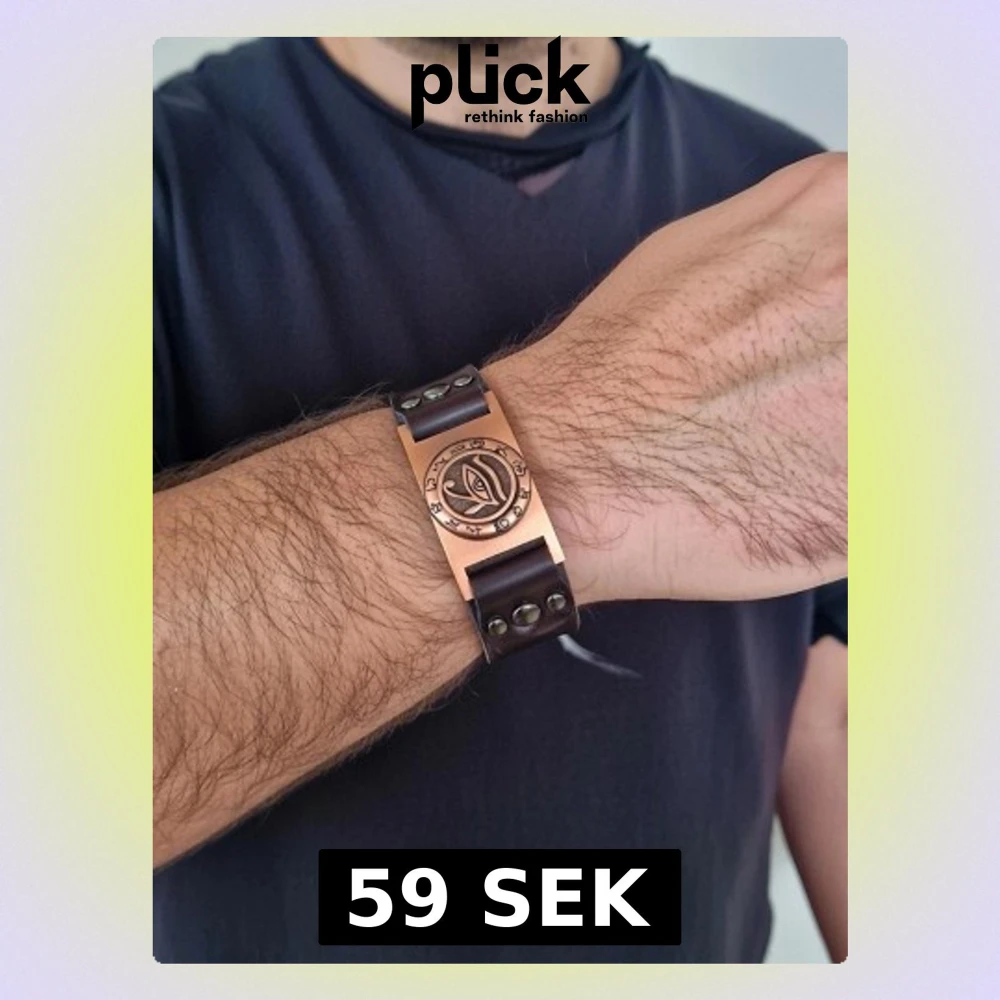 Armband vintage nordisk viking Horus öga. Konstläder. Storlek 23 cm långt. Bredd 3 cm.