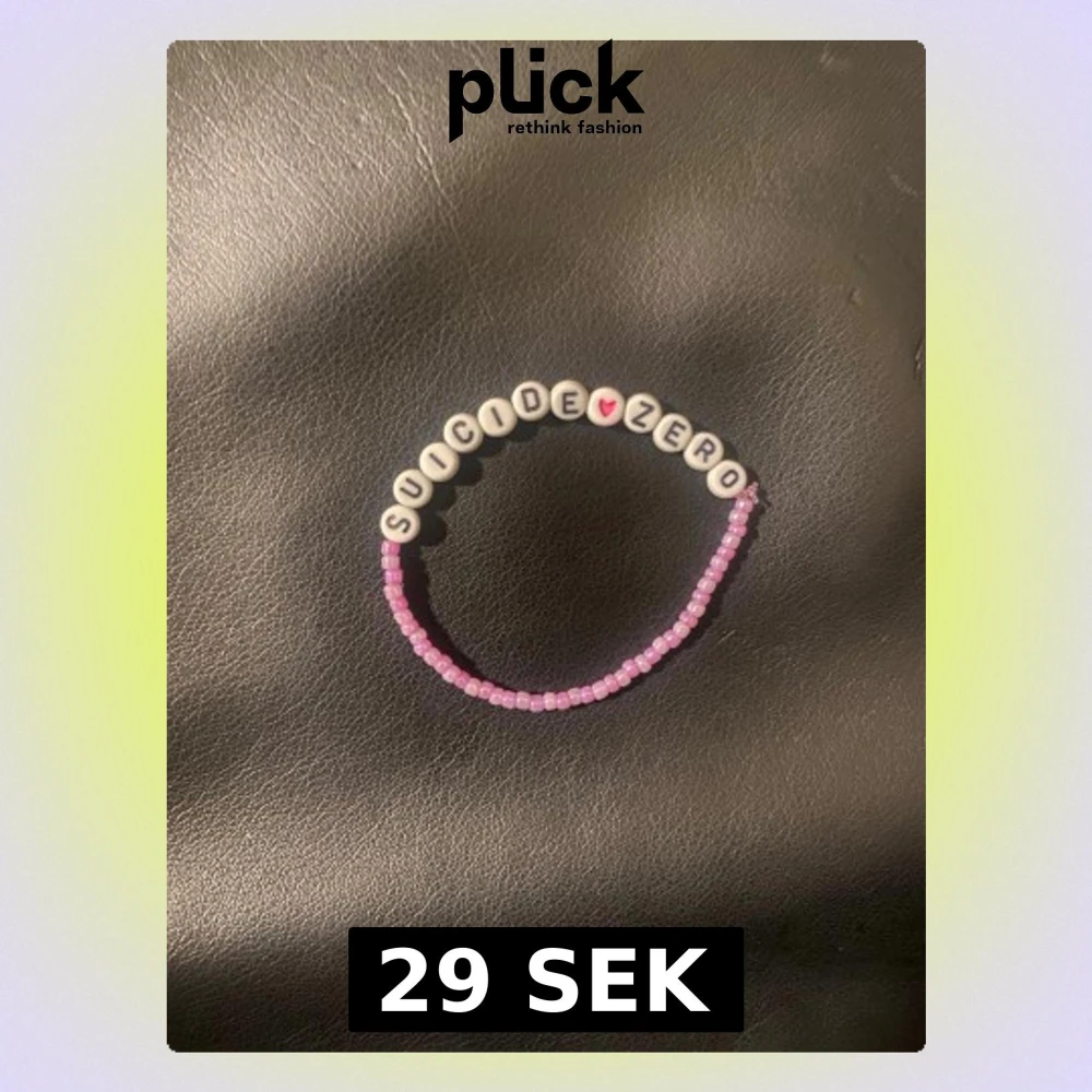 Ett handgjort pärlarmband med texten 'SUICIDE ZERO' i vita bokstavspärlor och ett litet rosa hjärta. Resten av armbandet består av små rosa pärlor. Perfekt accessoar för dig som vill bära ett viktigt budskap.