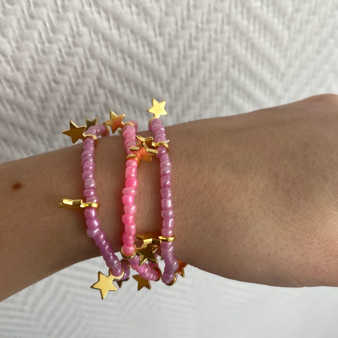 Säljer dessa rosa armband med guldstjärnor💗 20kr styck, 2 för 25kr. Gratis frakt
