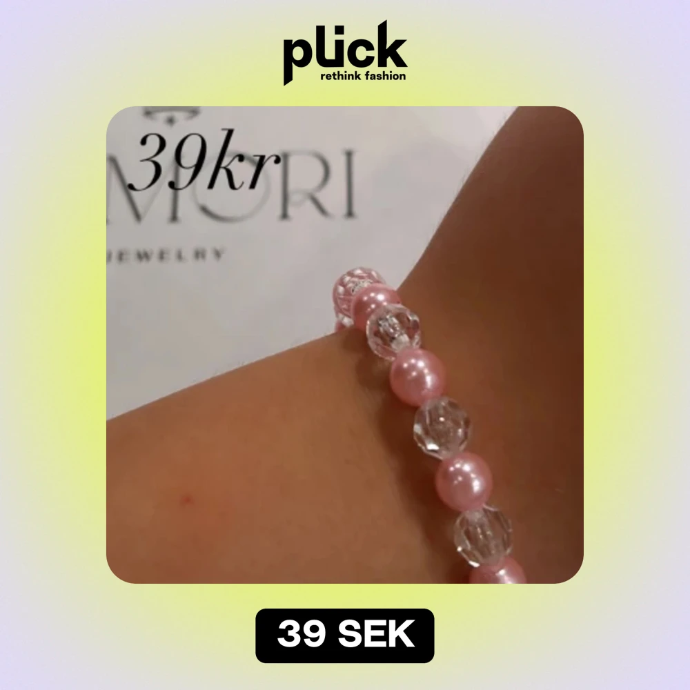 Ett elegant armband från Amori med rosa pärlor och genomskinliga kristallpärlor. Armbandet är elastiskt och passar de flesta handleder.