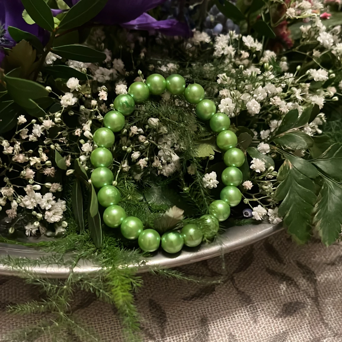 Jag säljer armband med gröna pärlor och är super fina och det är elastiskt band🤗Alla Pengarna går till canserfonden❤️