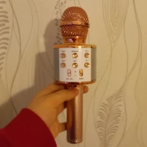 Mikrofonen behöver laddas. Man kan lÀgga eko och man kan koppla hörlurar