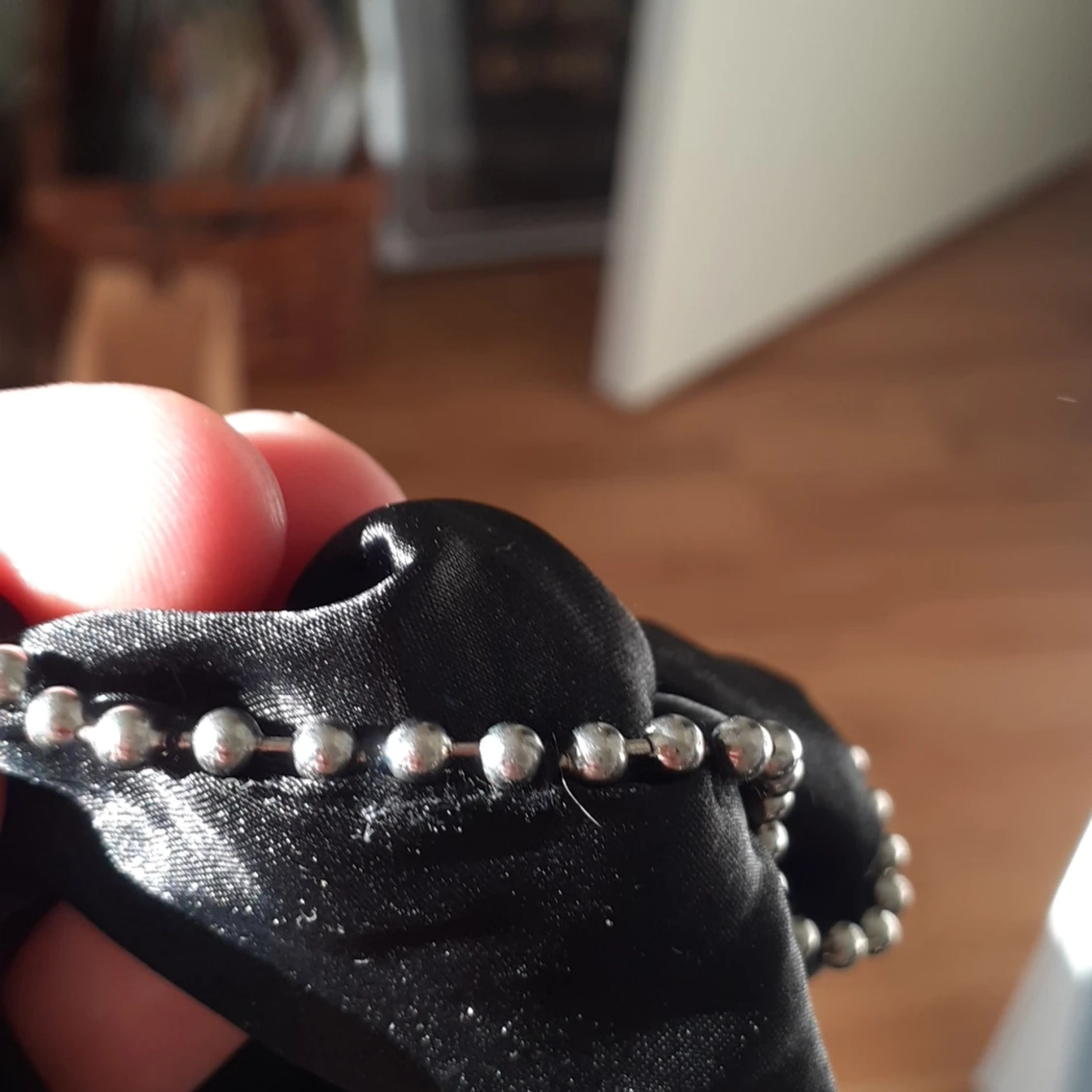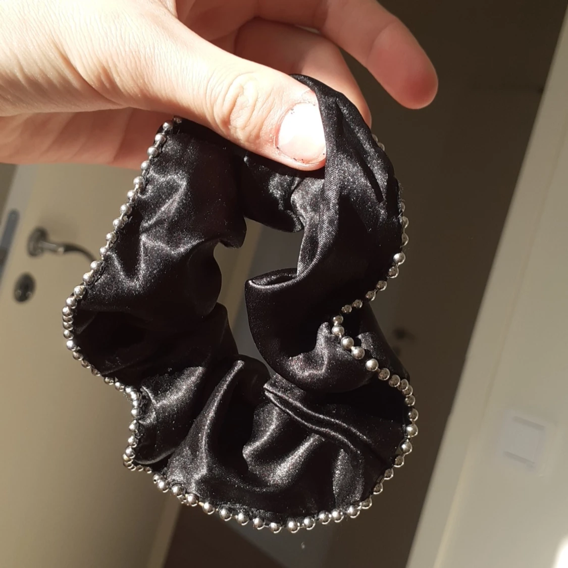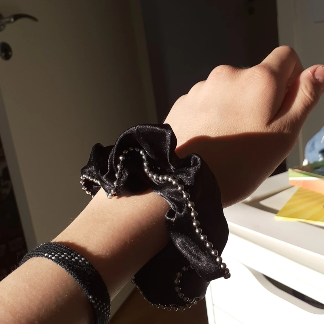 Helt ny skrunchi med en silver pärlor på köpte den för 79kr men säljer för 20kr + frakt på 11kr