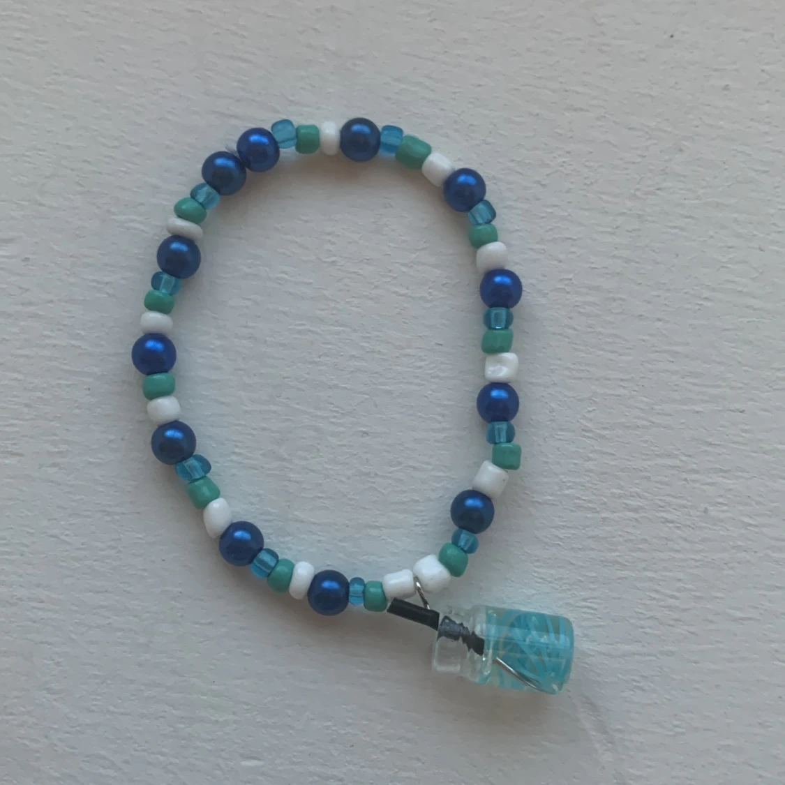 Hej! Jag säljer ett armband som är helt handgjort. Med färgen vit, blå och turkos! 🤗😍Hoppas ni köper!!