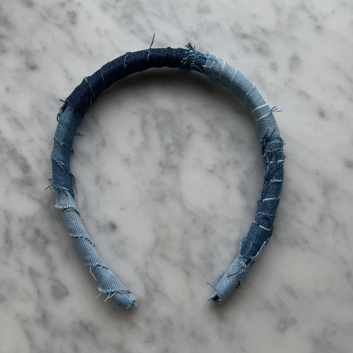 Ballt jeansdiadem i blått jeansmaterial med en rå och avslappnad look.🩵Perfekt för att ge en cool touch till din outfit kanske tillsammans med mina jeans armband (finns i min shop)🩵. Diademet har en lätt vadderad känsla och är täckt med fransigt jeans för en unik stil. Om ni har några frågor eller funderingar är det bara att skriva till mig privat!