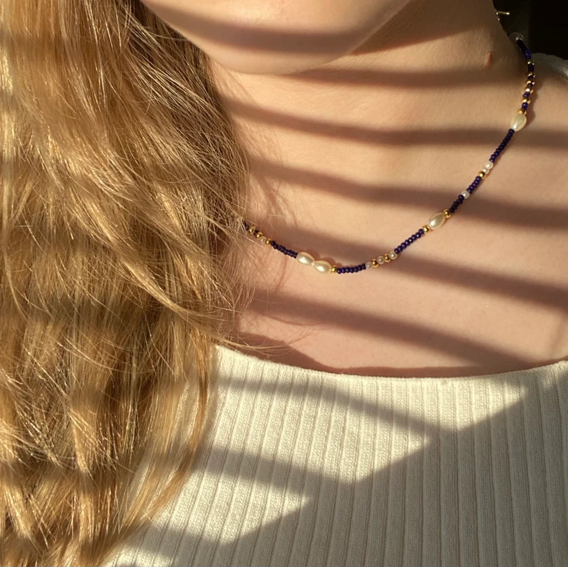 Superfint pärlat halsband. Går att få andra färger och designs efter önskemål.