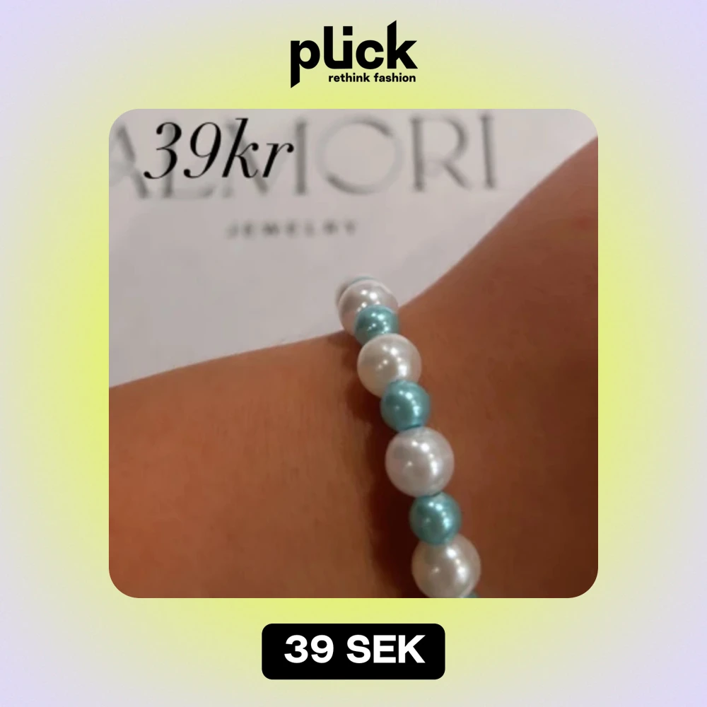 Ett elegant armband med vita och turkosa pärlor. Armbandet har en enkel och stilren design som passar till både vardag och fest.
