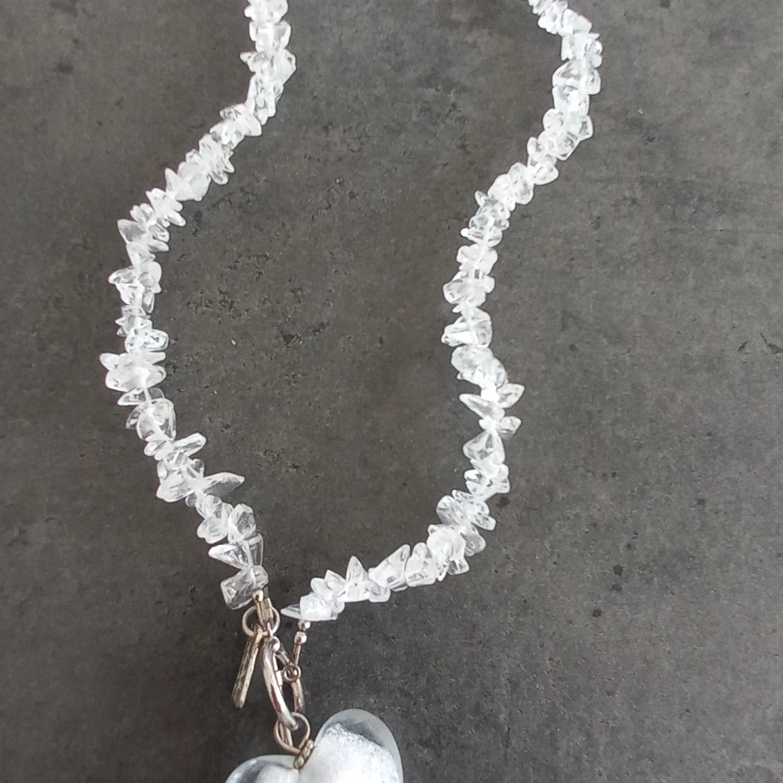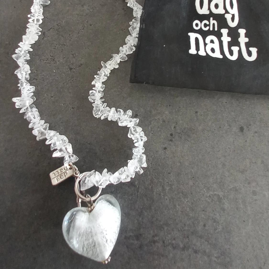 från dag och natt Bergskristall samt stort hänge I muranoglas. Ca 47cm långt