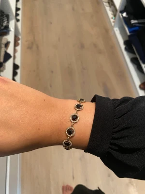 Armband i Guld med svart Sten Använd få gånger, en lite mini sten är borta därav det billiga priset
