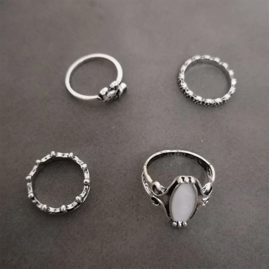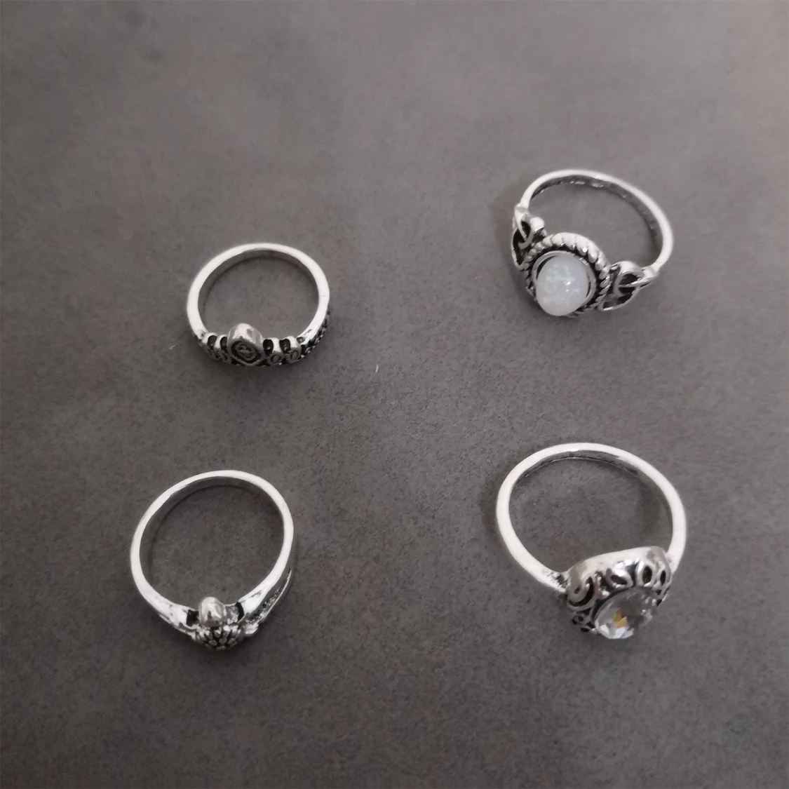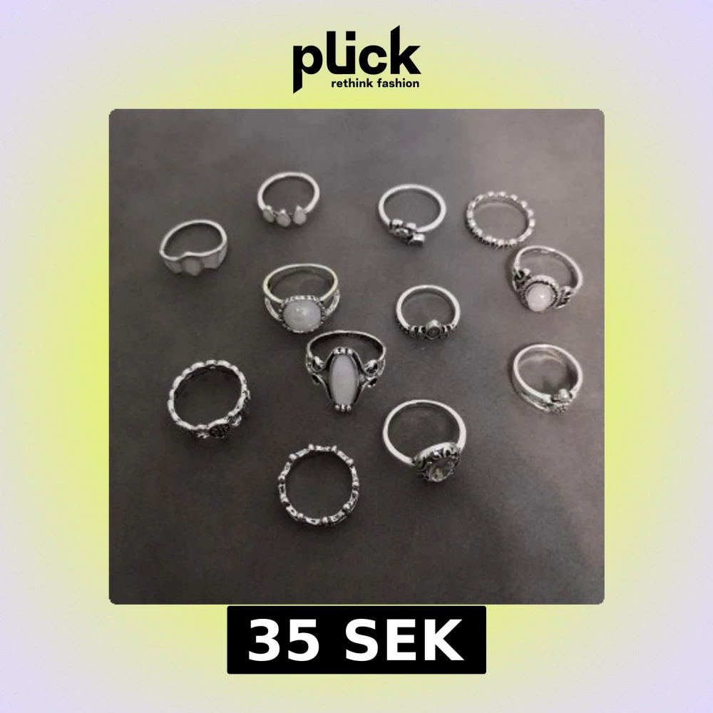 Säljer ett set med 12 snygga ringar i silverfärg med olika former och mönster. Perfekt för dig som gillar att mixa och matcha flera ringar samtidigt för en cool look. Materialet är zinc alloy. (301)