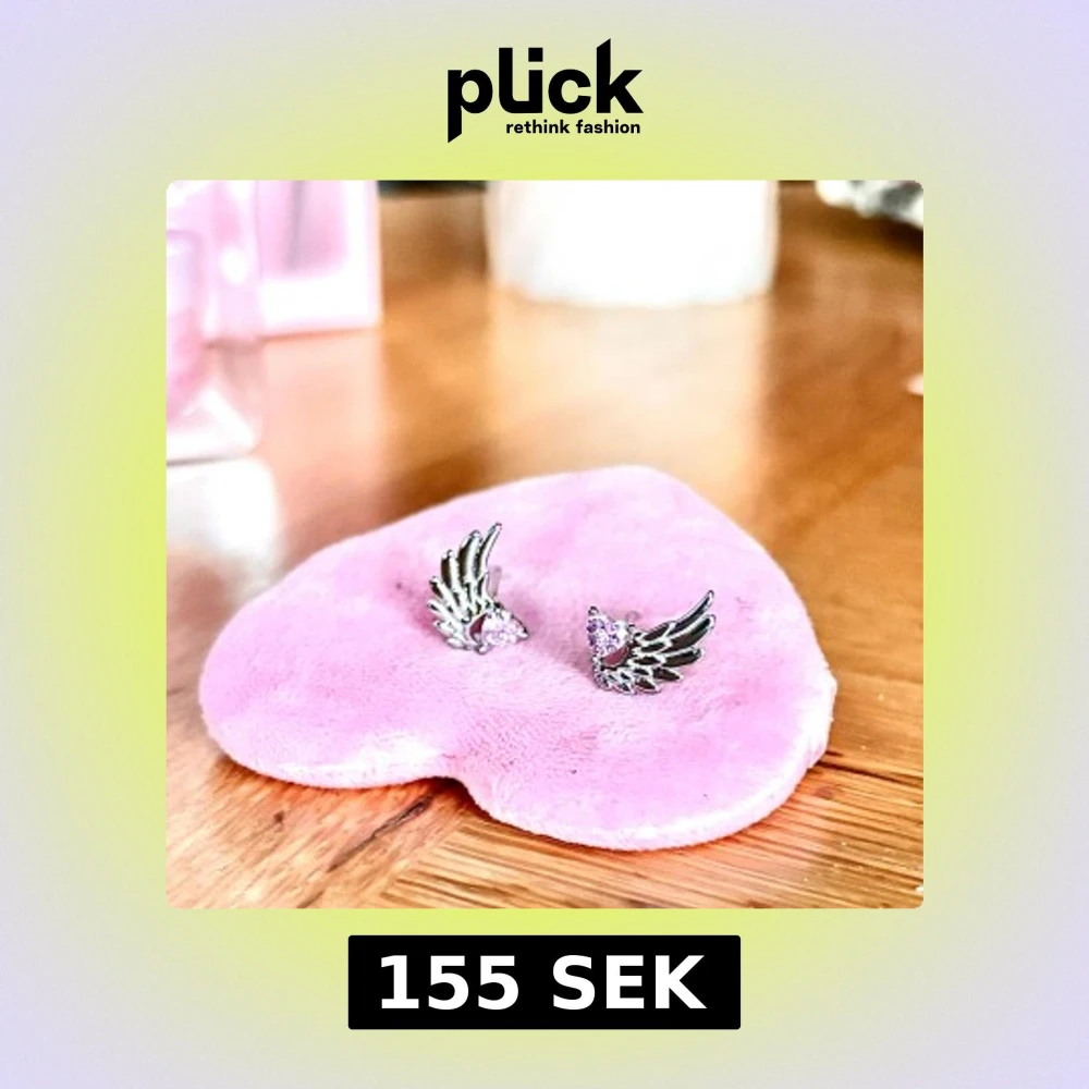 Söta och trendiga vingformade örhängen i silver med rosa stenar. Höjd: 1,5 cm. Oanvända.