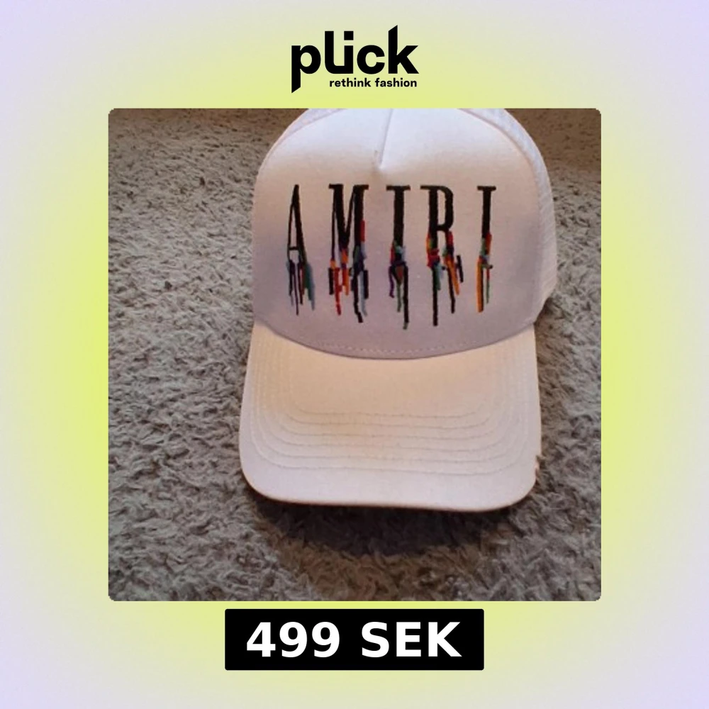 Snygg vit keps från Amiri med broderad logga framtill i svart och färgglada detaljer som rinner ner. Kepsen har mesh på sidorna och bak, samt justerbar snapback. Perfekt för dig som vill sticka ut med en unik accessoar.