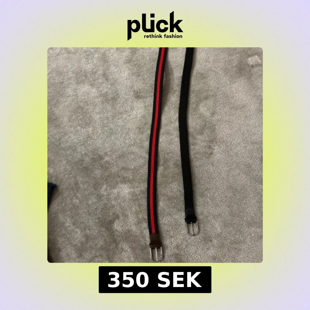 Säljer två snygga flätade bälten från John Henric. Ett är helsvart med svarta skinn-detaljer, det andra har svart bas med en röd rand i mitten och bruna skinn-detaljer. Båda har silvriga spännen och är märkta med storlek 100.