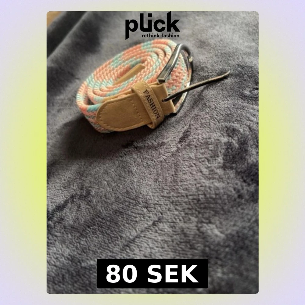Säljer ett snyggt flätat bälte i pastellrosa och ljusblått med beigea skinn-detaljer och silverfärgat spänne. Bältet är ca 1 meter långt och har en mjuk, flexibel känsla. Perfekt för att addera lite färg till din outfit!