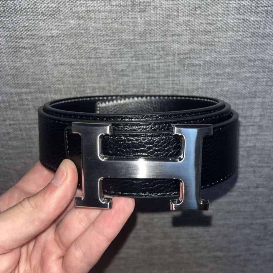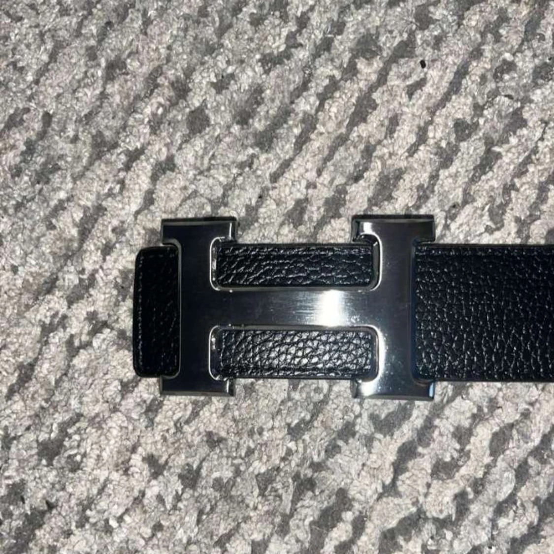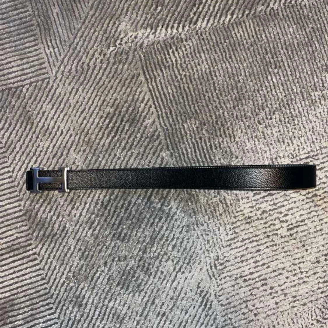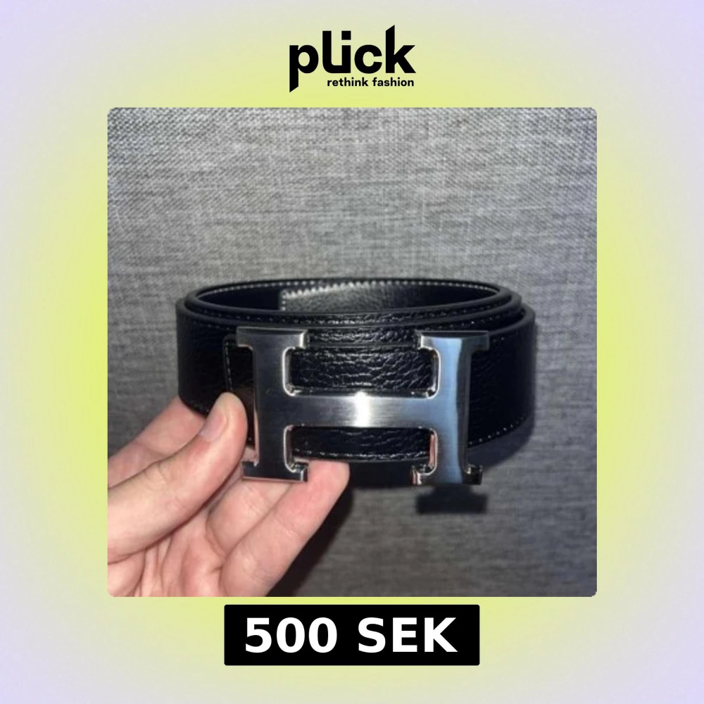 Herm bälte - svart med silverspänne, 110 cm Snyggt och klassiskt Herm-bälte i svart med silverspänne. Längd 110 cm med 5 hål för justering. Färg: Svart Spänne: Silver Längd: 110 cm Skick: Oanvänt Snabb leverans