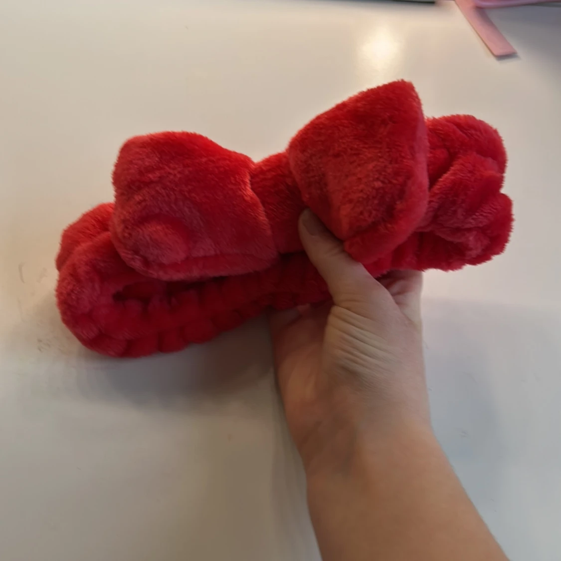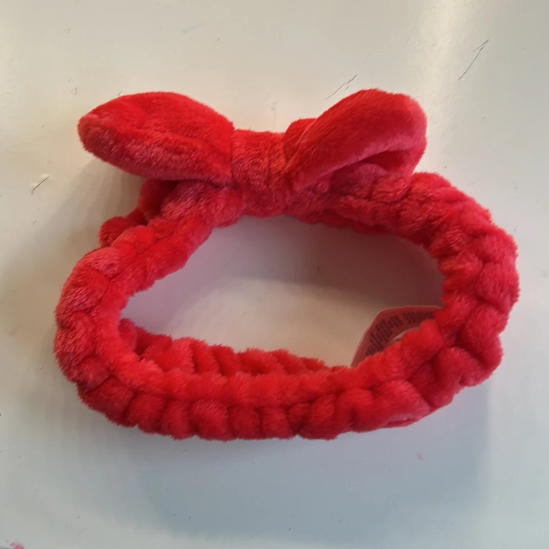 Snyggt och mjukt rött diadem med en stor rosett framtill. Perfekt för att ge en färgklick till din outfit. Tillverkad i ett plyschliknande material som känns bekvämt mot huden.