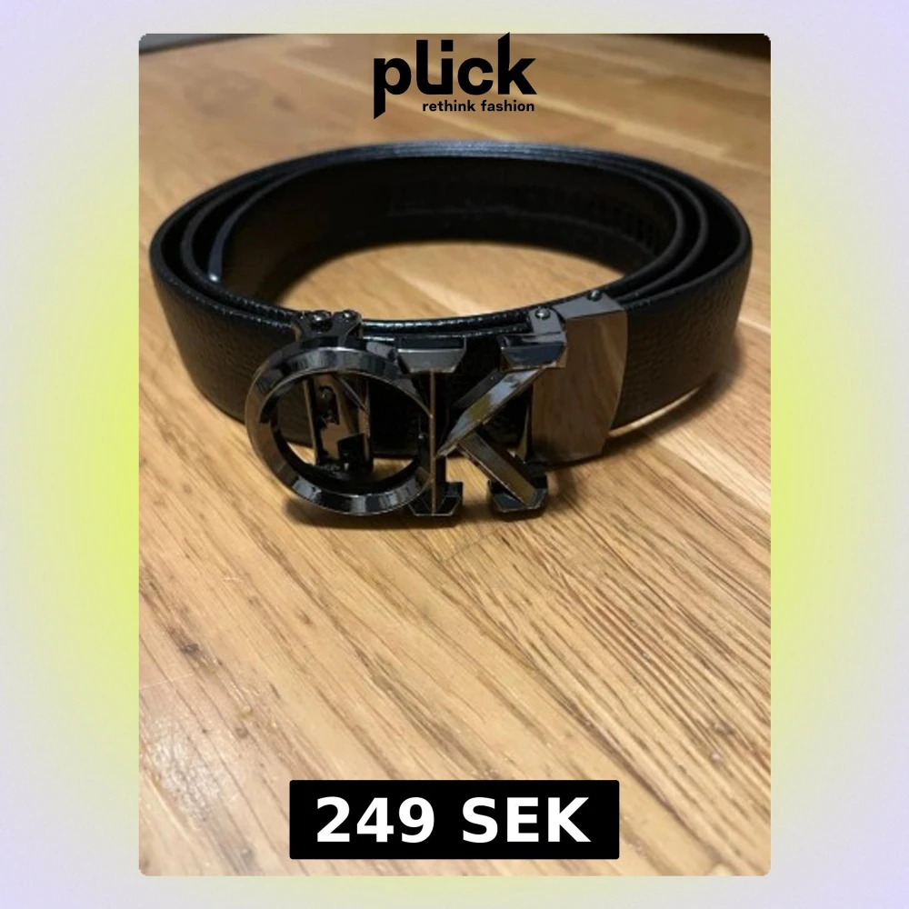 Snyggt svart bälte med CK logga. Bältet är gjort i präglat skinn och har en stilren, modern look som passar till jeans eller kostymbyxor. Perfekt accessoar för att lyfta din outfit. Aldrig använt då det var för långt för mig.