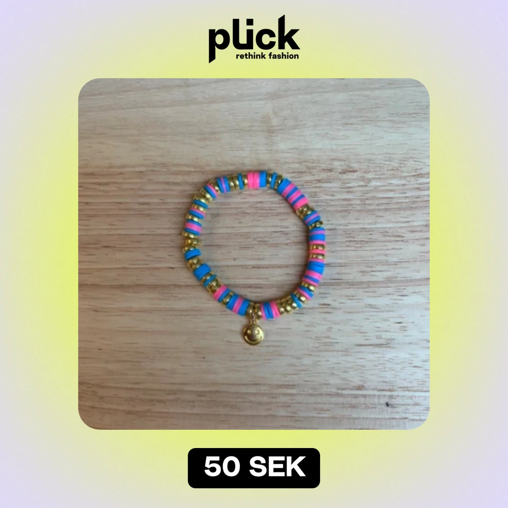 Ett super fint rosa och blĂ„tt armband med en smeilye pĂ„. Detta armbandet Ă€r super fint att ha nu till pĂ„sk eller i sommarenâ€ïž.