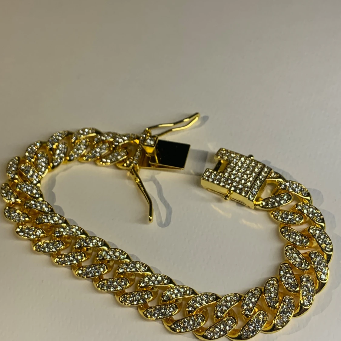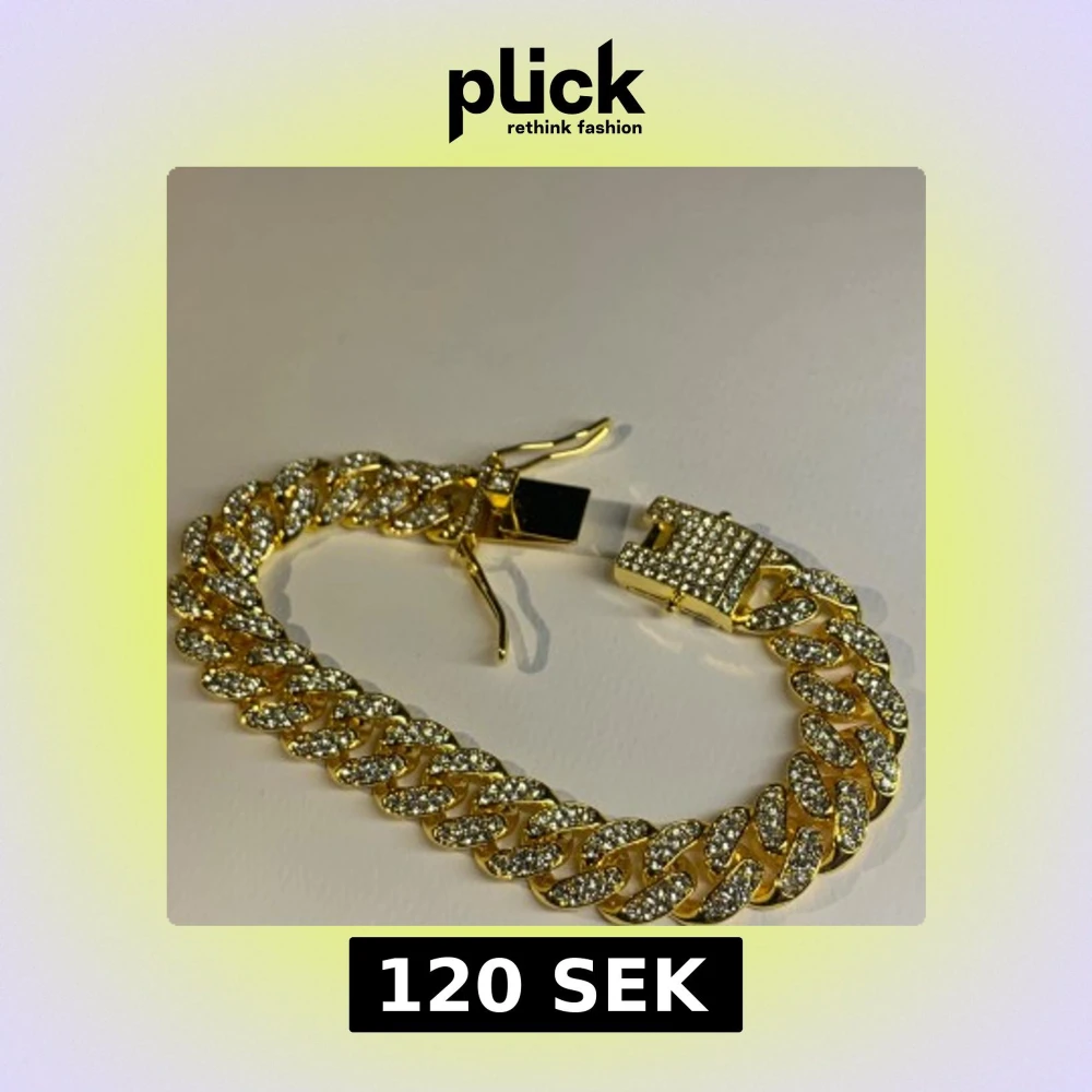 Snyggt chunky armband i guldton med stora länkar täckta av glittrande stenar. Låset är också dekorerat med stenar för extra bling. Perfekt statement piece för dig som vill sticka ut och glänsa lite extra.