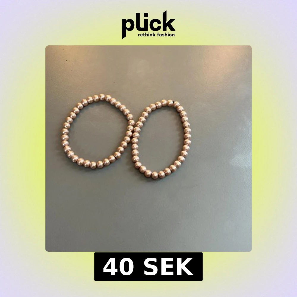 Säljer två stycken handgjora armband med runda beige pärlor på elastisk tråd.
