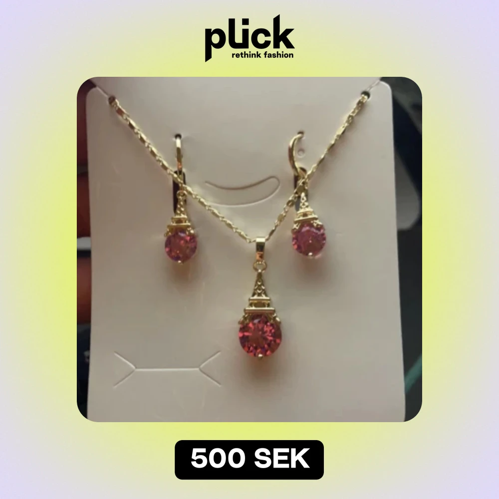 18k guld planterad halsband och örhänge… Paris design, finns i rosa och vit färg